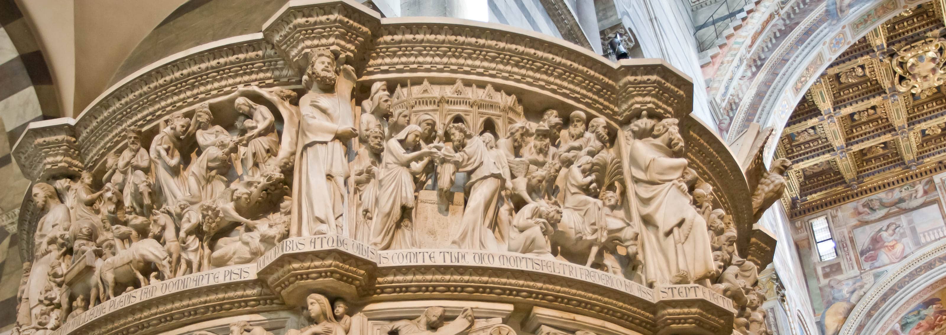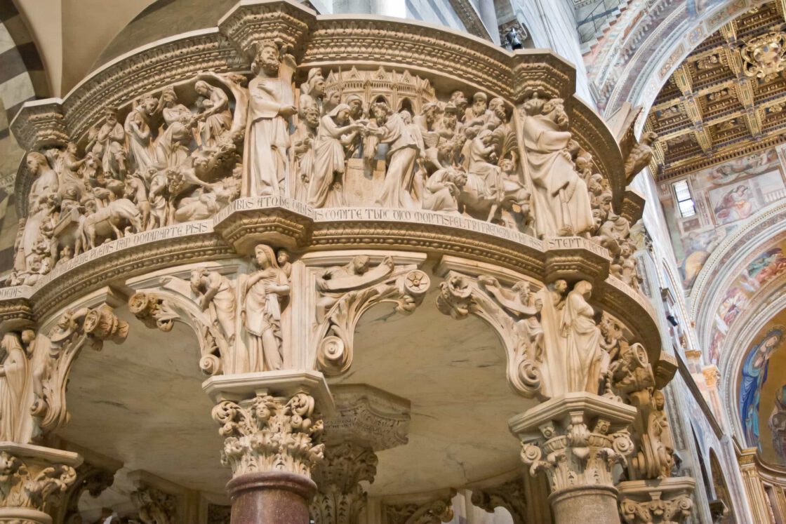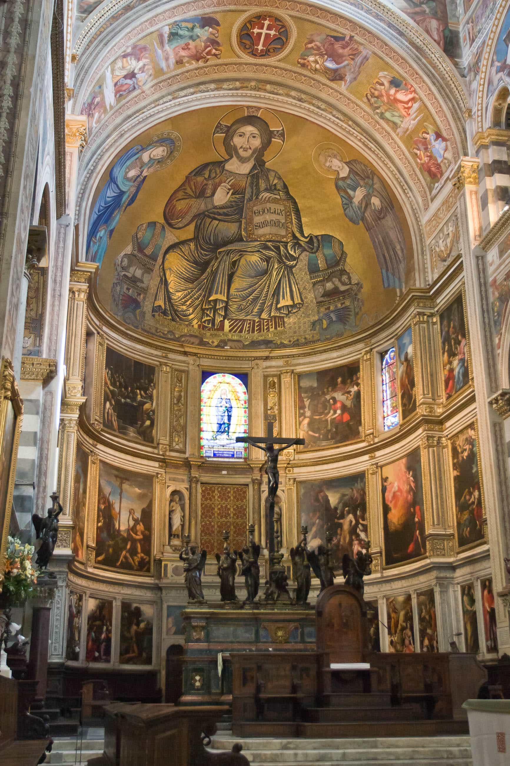 The soaring cathedral also features a huge intricately carved pulpit (sculpted by local boy Giovanni Pisano) and a vast 1302 mosaic, Christ in Majesty. But don’t take our word for it; look at the photos, since this is one of the few Italian churches where we’ve been allowed to take pictures.